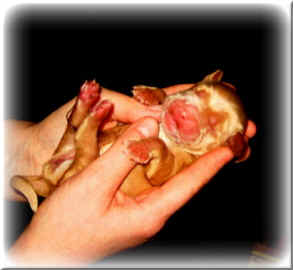 Die nächste Aussage brauchte etwas, bis sie wirklich zu mir durchgedrungen war „ich habe zwei goldene Puppies, zwei Tage alt und wenn Interesse besteht, eines ist nach Japan versprochen, das andere kann ich haben.....unkupiert“. Sein Angebot, beide bleiben unkupiert damit ich aussuchen kann.